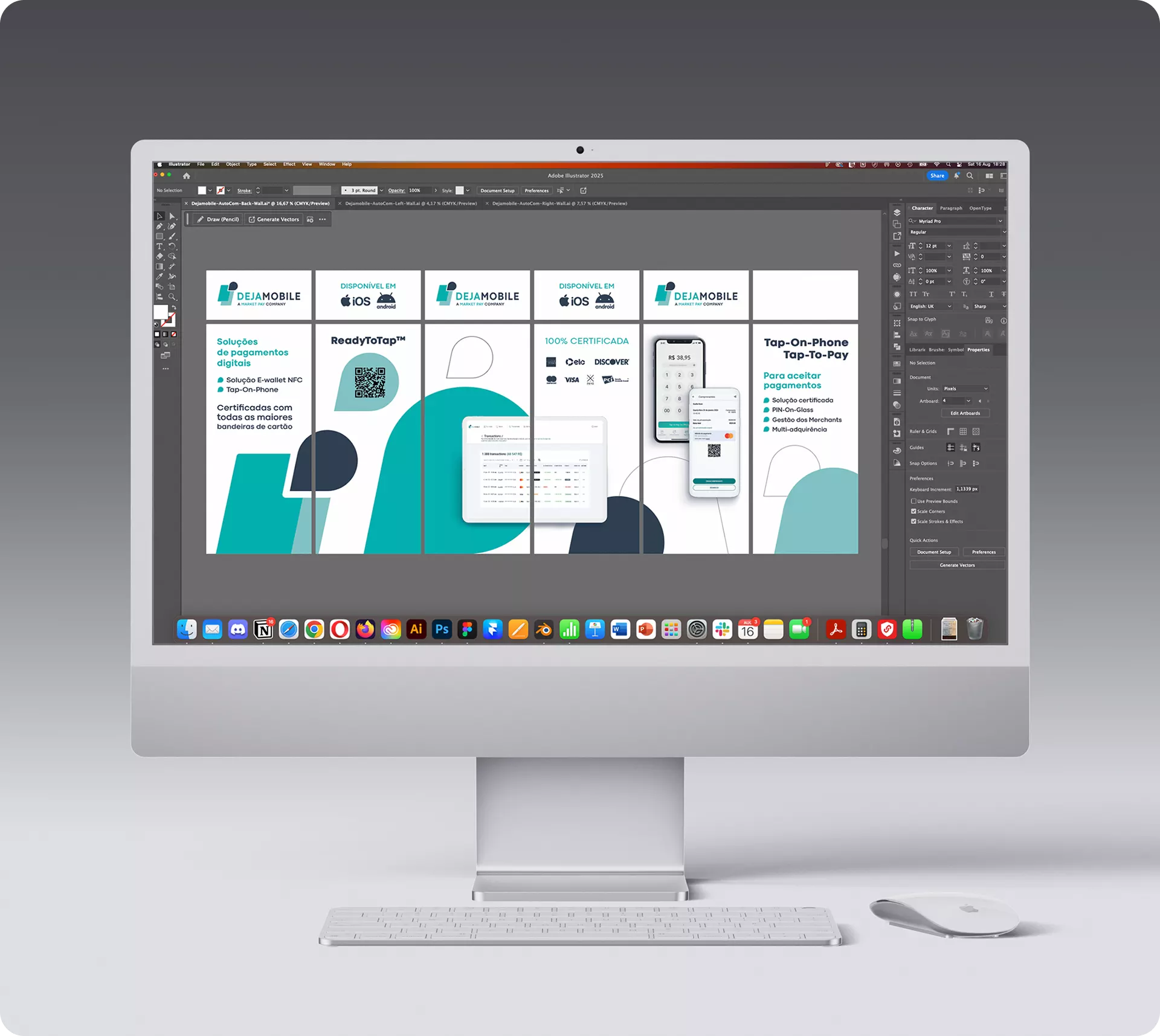 In 2024 and 2025, Market Pay and Dejamobile enhanced their presence at key FinTech events worldwide. Our role was to design event branding and printed graphics that translated each brand’s identity into a clear and impactful on-site experience.