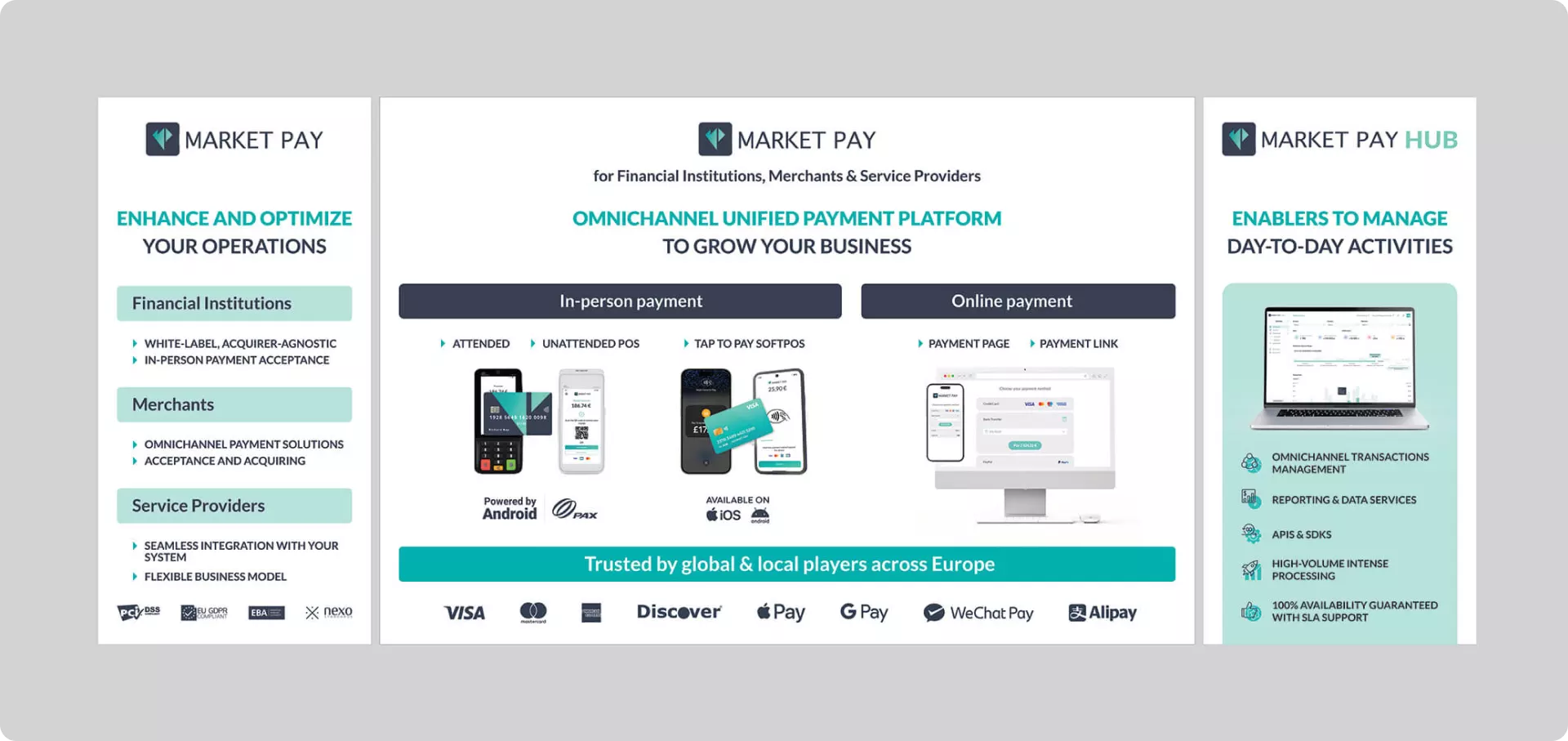 Market-Pay is a leading European payment solutions provider specializing in innovative payment technologies for retail, hospitality, and service industries. Operating across multiple European markets, they deliver comprehensive payment ecosystems combining hardware, software, and services.